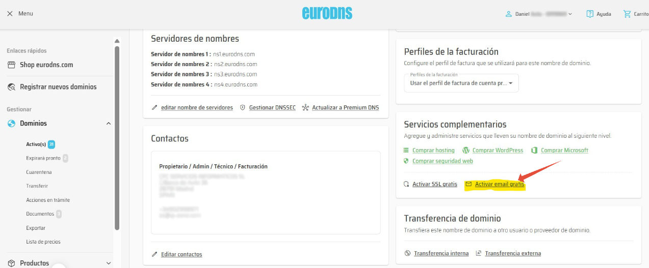 Con el registro de un dominio, EuroDNS, te regala una cuenta de correo electrónico con tu dominio. Estos son los pasos para activarlo.